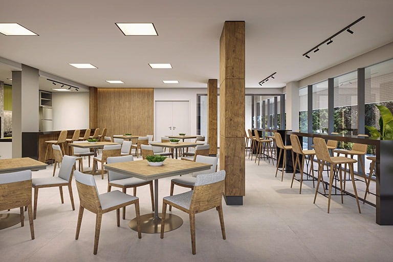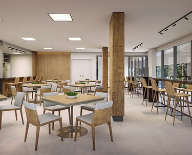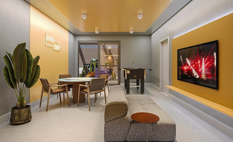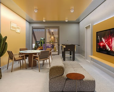 Área comum mobiliada e decorada